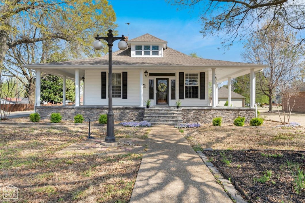 Nestled in the heart of the charming community of Corning, Arkansas, this one-of-a-kind historic home has been lovingly cared for by only two families since it was built in 1914! This remarkable residence is brimming with unique features that reflect the past while offering updated amenities. The gorgeous wrap around porch is grounded with non-slip wood look stamped concrete! Step inside to discover quirky details and hidden treasures throughout, including small cubbies, cozy nooks, and distinctive cabinetry that add character to every room. Even remnants of original wallpaper featuring a horse-and-buggy scene provide a rare glimpse into the home’s storied past. Generously sized (nearly 3,000 sq ft), the home offers a blend of vintage charm and functionality, including beautifully cedar-lined closets that add both beauty and practicality. The primary closet has been custom fitted with pull-down racks to the ceiling for ease in switching out seasonal clothing. Whether you’re a lover of history or just seeking a home with a touch of personality, this property is truly a gem because it has maintained all the original character with the modern features you desire. Appliances…they all convey with the property including a Generac generator and built-in gas grill and extra fridge in the sunroom. This is your chance to own a piece of history in a tight-knit community, with all the charm and nostalgia of a bygone era. One last big thing to mention: the sellers had it appraised recently and the asking price is well below the appraisal.